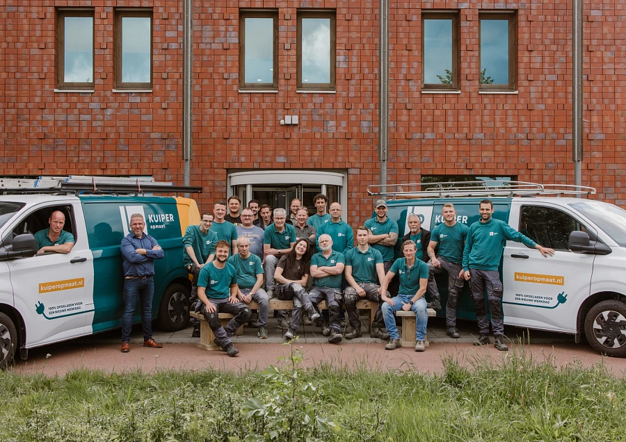 100% opgeladen voor een nieuwe werkdag staat er op de nieuwe, electrische bedrijfsbussen van Kuiper Opmaat. Maar dat geldt ook voor dit geweldige team van vakmensen dat steeds maar groter wordt. Die maken het verschil en zetten zich iedere dag in om goed werk te leveren aan onze opdrachtgevers. Want leuk nieuws natuurlijk, die nieuwe bussen. Maar bij Kuiper gaat het vooral om de mensen. We vonden het dan ook hoog tijd om van deze toppers een officiële teamfoto te maken met op de achtergrond natuurlijk ... de nieuwe bussen.