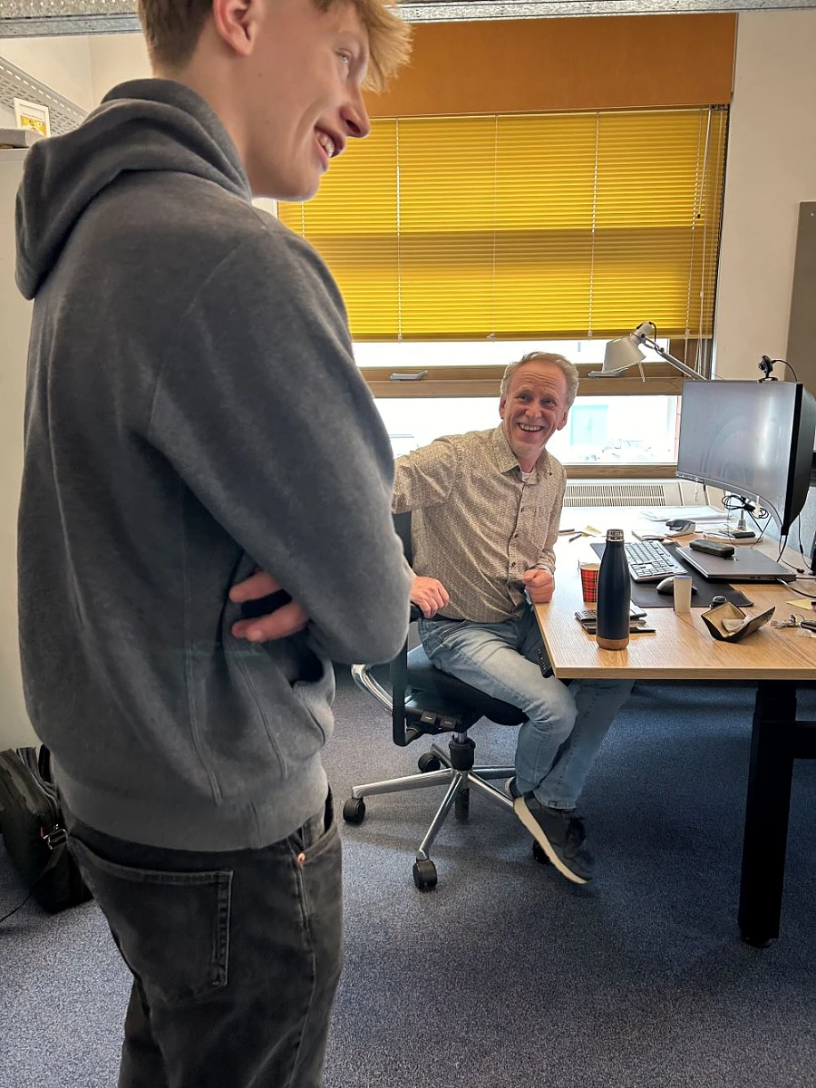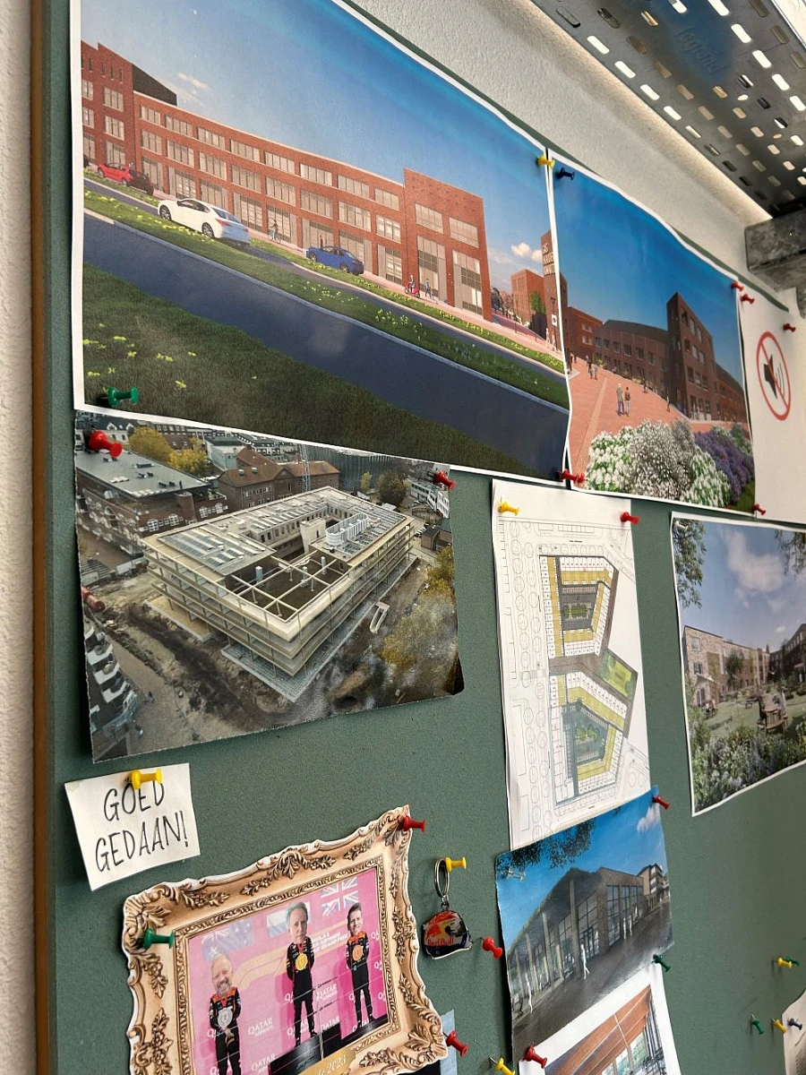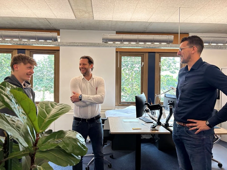 Na de lunch met de collega's in de uitvoerdersruimte keerde de nieuwe directie terug naar kantoor voor een overleg met de afdeling marketing & communicatie. In de toekomst hebben we veel nieuwe mensen nodig. Van Abel en Luc kregen wij goede adviezen over hoe we hun generatie enthousiast kunnen maken voor het werken in de bouw. Luc pleit voor meer technieklessen op scholen, ook op de hogere niveaus. "En laten zien dat de bouw meer is dan alleen wat stenen stapelen." Abel was verrast door de veelzijdigheid van het werk en de professionaliteit van een bouwbedrijf. "Ik dacht dat het vooral zwaar en vies werk was maar er is tegenwoordig heel veel aandacht voor veiligheid, kwaliteit en innovatie. Hij ziet ook overeenkomsten met de autotechniek. In de bouw wordt alles ook steeds meer elektrisch en wordt duurzaamheid steeds belangrijker." En hoe wij die jongere generatie kunnen bereiken? Met leuke filmpjes op Tiktok.