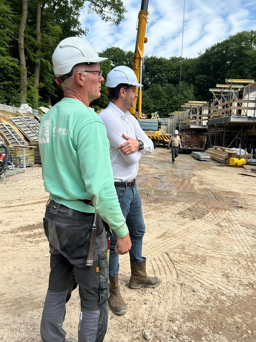 De dag begon met een gezamenlijk ontbijt met alle bazen van morgen en de deelnemende bedrijven in de Papierfabriek Nijmegen. Op ons kantoor in Arnhem namen de nieuwe bazen een kijkje op de afdeling Werkvoorbereiding waar onze bouwprojecten worden voorbereid en het projectbureau. In de timmerfabriek van Kuiper Opmaat konden Abel en Luc zien hoe de kozijnen voor een bouwproject werden gemaakt. Daarna was het tijd om een bouwproject in uitvoering te bekijken. Ze brachten een bezoek aan de bouwplaats op Landgoed Rennen Enk waar Kuiper 36 appartementen bouwt in opdracht van Stichting Beheer Insula Dei. En dus: veiligheidsschoenen aan en helm op!