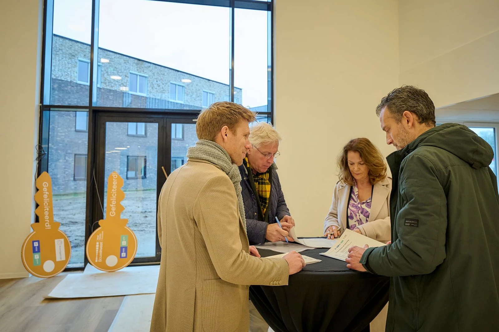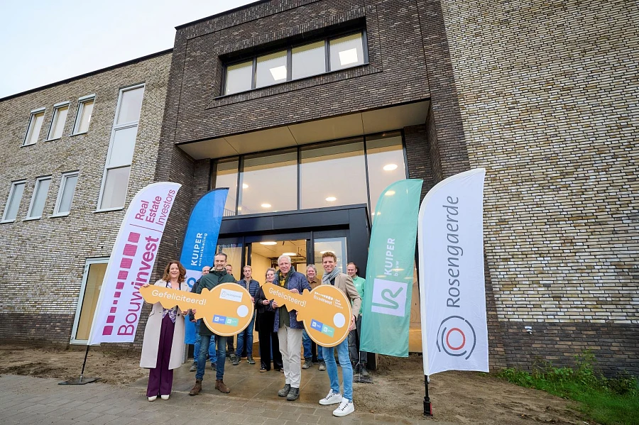 Wij zijn trots dat wij vandaag het nieuwbouw zorgcomplex in Dalfsen hebben opgeleverd aan investeerder Bouwinvest en huurder Rosengaerde. Ontwikkelaar Ramon Derksen van Kuiper Ontwikkeling en projectleider Remco Mensink van Kuiper Bouw overhandigden symbolisch ‘de sleutel’ van het complex aan Hans Verheij van Bouwinvest en Margot Seip van Stichting Rosengaerde.