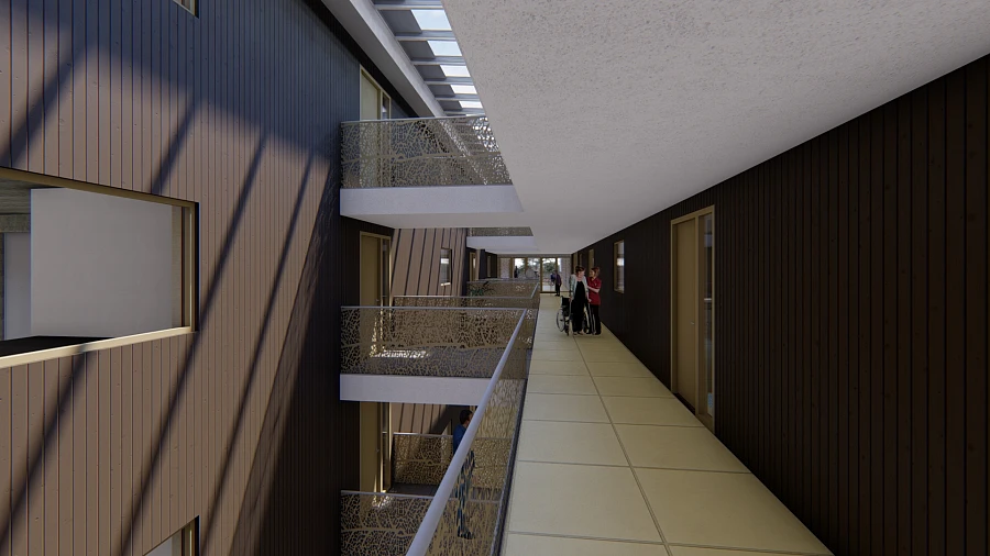 De huurappartementen ontsluiten straks op een transparant atrium dat tegelijk als sociale ontmoetingsplek dient. Bijzonder is dat de energieopwekking door een ijsbuffer wordt gerealiseerd. Dit is een relatief nieuwe vorm van duurzame energieopwekking als alternatief voor een WKO-installatie.